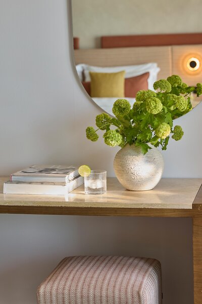 Wohnen: Superior-Doppelzimmer (DZM, ca. 30 qm), Klimaanlage, Minibar (geg. Geb.), Kaffee-/Teezubereiter, Espressomaschine, Kissenmenü, TV (55 Zoll), Telefon, WLAN, Safe. Bad, bodengleiche Dusche, WC, Föhn, Bademäntel, Slipper. Terrasse/Balkon, Meerblick. Max. 3E Wahlweise zur Alleinbenutzung (EZM)
