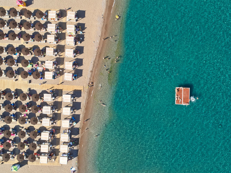 - oddelené od pláže cestou, nad morom, na svahu, uprostred prírody, ticho, blízko atrakcií, reštaurácie/obchody v blízkosti