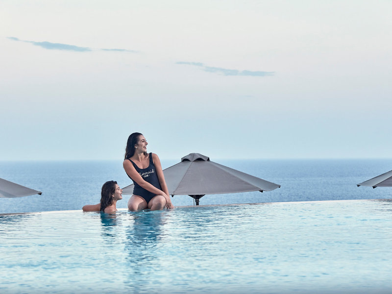 - Sky line Sea View Room Private Pool (DZM7), Doppelzimmer, Nichtraucherzimmer, Mindestalter im Zimmer: 16 Jahre, Meerseite, Meerblick, Blick auf Sea view, ca. 27 - 31 m², letzte Komplettrenovierung 2017, Gesamtanzahl der Räume in diesem Zimmertyp: 1, Aufteilung wie folgt: 1 Schlafzimmer, Klimaanlage: ohne Gebühr, individuell regelbar, zentral gesteuert, kalt, Fußboden: Fliesenboden, Laminat, Safe: ohne Gebühr, Deckenventilator, Bügeleisen, Bügelbrett, Kühlschrank: ohne Gebühr, Kaffee-/Teezubereiter, Wasserkocher, Telefon, Internet: WLAN/WiFi: ohne Gebühr, Fernseher: Flatscreen, im Schlafzimmer, deutsches Programm, Sat-TV, Roomservice: 07:00 Uhr - 00:30 Uhr, gegen Gebühr, Reinigungsservice: 09:00 Uhr - 15:00 Uhr, ohne Gebühr, Dusche, WC, Bademantel: ohne Gebühr, Slipper: ohne Gebühr, Föhn, Kosmetikspiegel, Terrasse: mit Liegen, mit Sitzgelegenheit, mit Private Pool