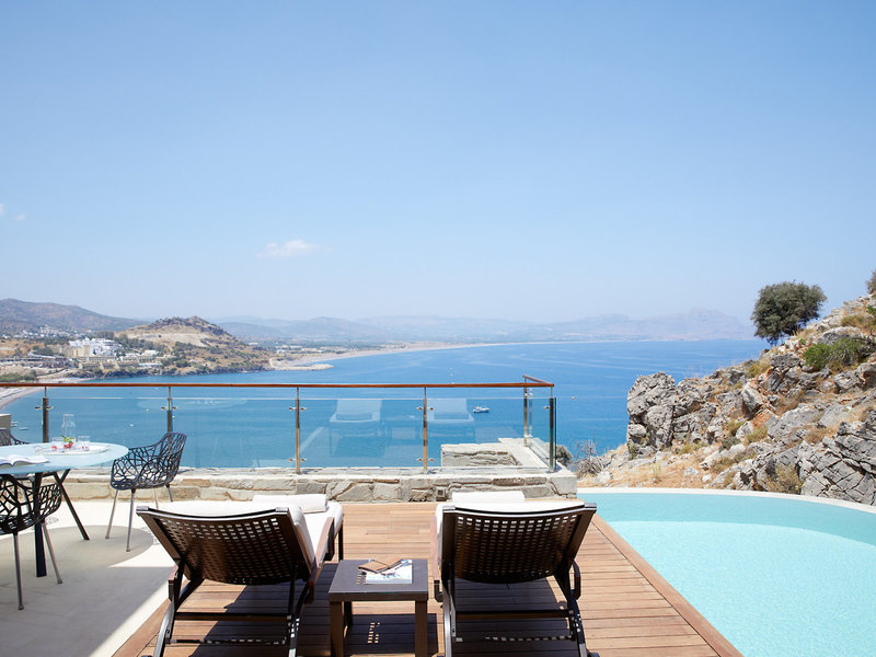 Poloha a okolie: Tento luxusný hotel neďaleko Lindosu sa môže pochváliť jedinečnou polohou na ostrove, v blízkosti historického starého mesta Lindos, a ponúka úchvatný výhľad na záliv Vlicha a južnú časť Egejského mora. Izby v radovej zástavbe sa nachádzajú na svahu a zaujmú svojím bezchybným dizajnom. Hotel kladie osobitný dôraz na personalizované služby a je ideálny pre páry a tých, ktorí hľadajú pokoj a chcú preskúmať pamiatky tohto kozmopolitného ostrova. Piesočnatá pláž je vzdialená približne 50 metrov, Lindos asi 2 kilometre a mesto Rodos približne 46 kilometrov. Čas transferu: približne 60 – 90 minút.