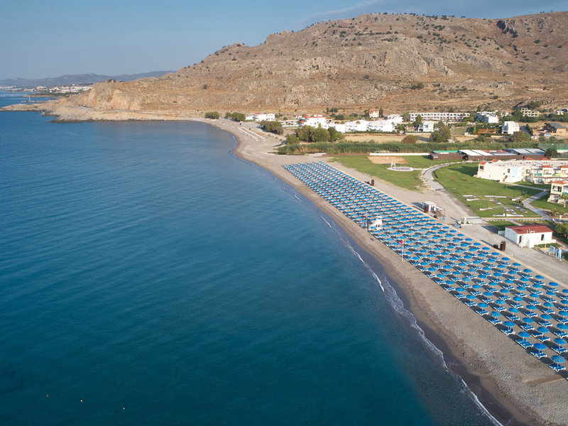 Poloha a okolie Rodinný hotel sa nachádza v pokojnej oblasti, predovšetkým na pláži "Lardos Beach" (hrubý piesok pred hotelom, posiaty štrkom a okruhliakmi; na a vo vode trochu kamenistá a niektoré skalnaté platne v voda; odporúčaná kúpacia obuv). Keďže pláž je veľmi široká, je ľahší prístup do iných častí pláže v blízkosti hotela. Najbližšie obchody a taverny sú v meste Lardos, ktoré je vzdialené asi 1,5 km. Mesto Pefkos je vzdialené asi 3,5 km a Lindos s bielymi domčekmi a uličkami asi 7 km. Čas prenosu: približne 65-105 minút.