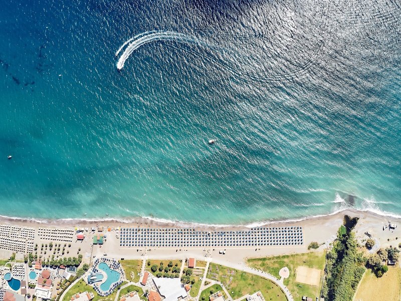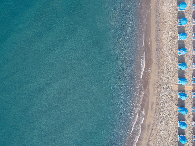 • Pláž Lardos: piesočná, kamienková, dĺžka pláže: cca 350 m, odporúčaná kúpacia obuv, verejná s vlastnou hotelovou časťou, ležadlá: zdarma, slnečníky: zdarma.