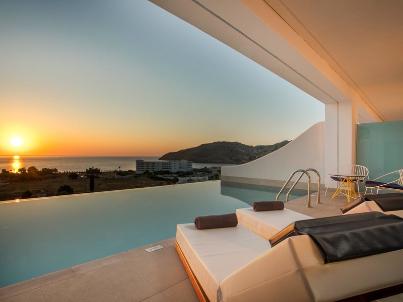 - Executive Junior Suite Sea View With Private Pool (JSM4), Juniorsuite, Nichtraucherzimmer, Mindestalter im Zimmer: 16 Jahre, Neubau, Meerblick, ca. 30 m², Gesamtanzahl der Räume in diesem Zimmertyp: 1, Aufteilung wie folgt: kombiniertes Wohn-/Schlafzimmer, 1 Doppelbett, 1 Schlafsofa (80x190cm), Klimaanlage: ohne Gebühr, individuell regelbar, kalt, Fußboden: Fliesenboden, Safe: ohne Gebühr, Sofa, Schreibtisch, Espressomaschine, Kaffee-/Teezubereiter, Minibar: ohne Gebühr, Telefon, Internet: WLAN/WiFi: ohne Gebühr, Fernseher: Flatscreen, im Schlafzimmer, deutsches Programm, Sat-TV, Reinigungsservice: wöchentlich, Dusche, Regendusche, WC, Bademantel, Slipper: ohne Gebühr, Föhn, Kosmetikspiegel, Balkon: mit Liegen, mit Sitzgelegenheit