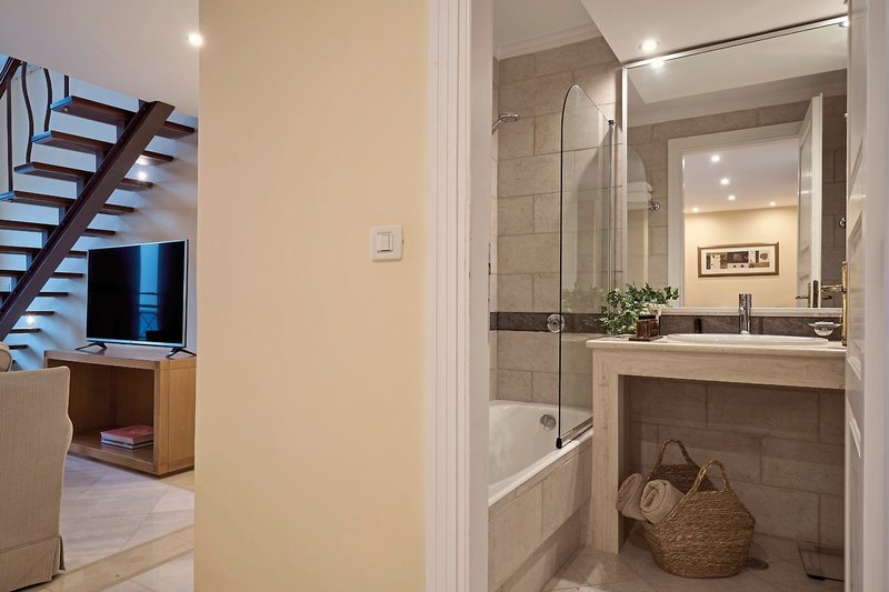 - 61-70 m2, suita, 2 poschodia, výhľad na more, 1 samostatná spálňa, kombinovaná obývačka/spálňa, 2 kúpeľne, vaňa, 2 toalety, župan, papuče, sušič vlasov, kozmetické zrkadlo, mramorová podlaha, klimatizácia, individuálne nastaviteľné, minibar za poplatok, trezor, 2 TV (satelitná TV), WiFi, espresso kávovar, káva/čaj, balkón alebo terasa