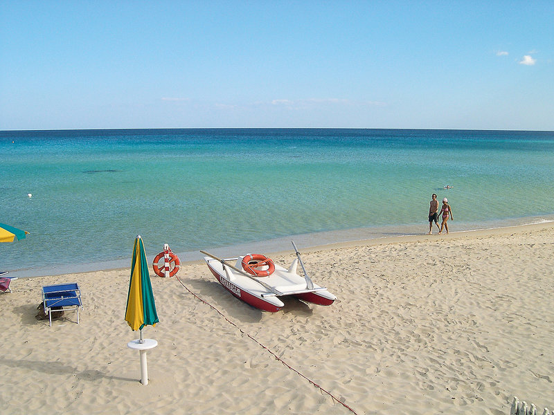 - Pláž 150 m, plážové služby cca. 15.05.- 30.09., slnečníky a lehátka za poplatok: od 2. radu, v závislosti od sezóny 16 - 28 € na deň, platí sa na mieste