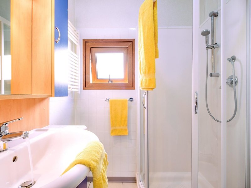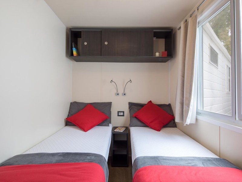 - Mobile Home Baia Revolution (MHX6), Mobile Home, Parkseite, Gartenblick, ca. 32 m², Gesamtanzahl der Räume in diesem Zimmertyp: 4, Aufteilung wie folgt: 3 Schlafzimmer, 4 Einzelbetten, 1 Doppelbett, Klimaanlage: Barzahlung, pro Tag ca. 8 EUR, individuell regelbar, kalt, warm, Fußboden: PVC, Kochnische, Kühlschrank, Fernseher: im Wohnbereich, Dusche, WC, Terrasse: mit Sitzgelegenheit