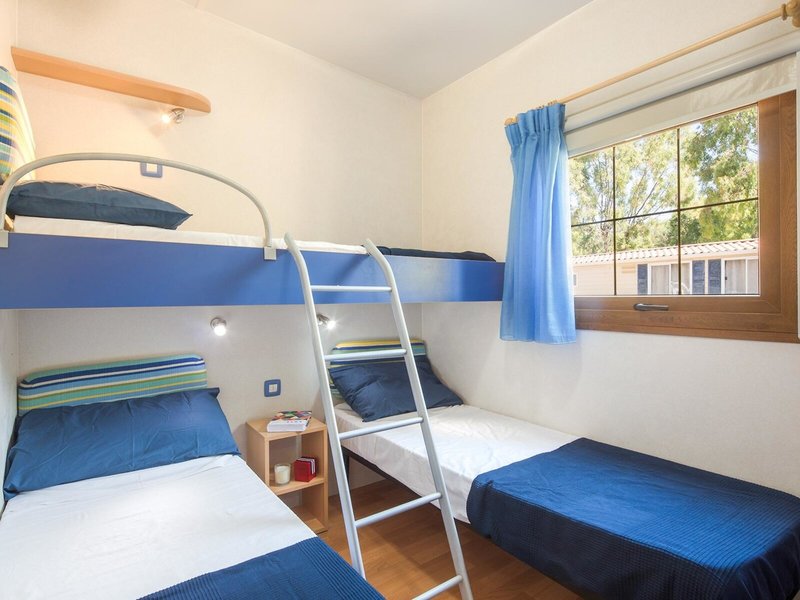- Mobile Home Baia Sardinia (MHX5), Mobile Home, Parkseite, Gartenblick, ca. 32 m², Gesamtanzahl der Räume in diesem Zimmertyp: 4, Aufteilung wie folgt: 3 Schlafzimmer, 4 Einzelbetten, 1 Doppelbett, Moskitonetz, Klimaanlage: pro Nacht ca. 8 EUR, individuell regelbar, kalt, warm, Fußboden: PVC, Kochnische, Kühlschrank, Fernseher: im Wohnbereich, Dusche, WC, Terrasse: mit Sitzgelegenheit, Nebenkosten: Endreinigung: einmalig ca. 50 EUR