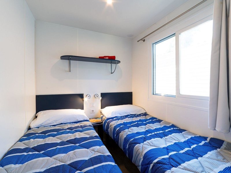 - Mobile Home Blu Romantic (MHX2), Mobile Home, Parkseite, Gartenblick, ca. 24 m², Gesamtanzahl der Räume in diesem Zimmertyp: 3, Aufteilung wie folgt: 2 Schlafzimmer, 2 Einzelbetten, 1 Doppelbett, 1 Kinderbett, Moskitonetz, Klimaanlage: Barzahlung, pro Tag ca. 8 EUR, individuell regelbar, kalt, warm, Fußboden: PVC, Kochnische, Kühlschrank, Esstisch, Internet: WLAN/WiFi: gegen Gebühr, Fernseher: im Wohnbereich, Dusche, WC, Terrasse: mit Sitzgelegenheit, Nebenkosten: Endreinigung: einmalig ca. 50 EUR