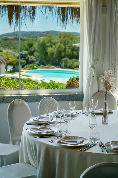 - Gourmetrestaurant „S'Ollastu“: Küche: international, italienisch, mediterran, Fisch/Meeresfrüchte, Diätküche, glutenfreie Gerichte, Kindermenü, leichte Gerichte, saisonale Gerichte, vegetarische Gerichte, vegane Gerichte, à la carte, gesetztes Menü, klimatisierbar, mit Terrasse