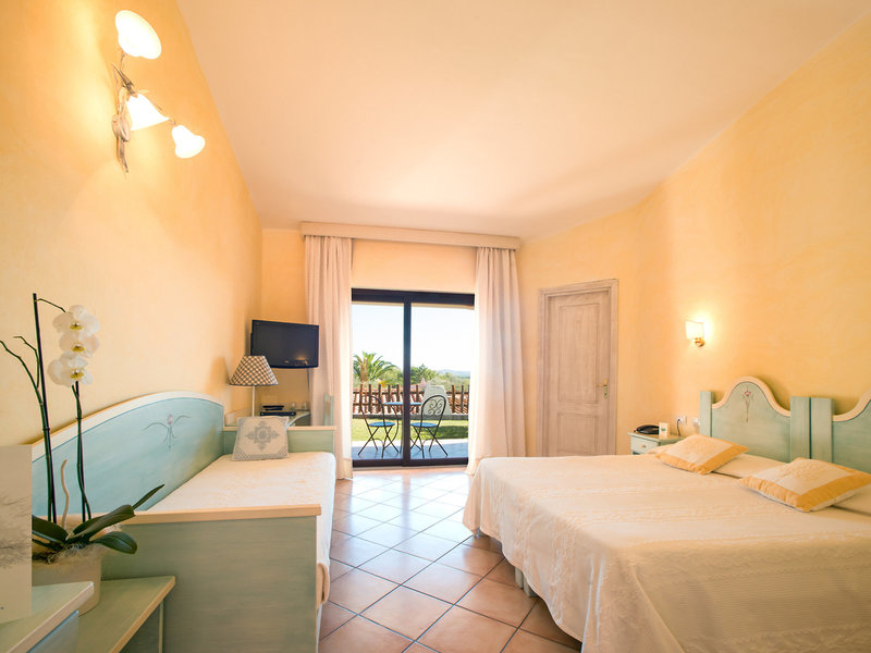 - Comfort (DZX2), dvojlôžková izba, strana do záhrady, strana do parku, výhľad do záhrady, výhľad do parku, výhľad do záhrady alebo na ostrov Tavolara, cca 20 - 26 m², celkový počet izieb v tomto type izby: 1, rozloženie ako nasleduje: kombinovaná obývačka/spálňa, Detská postieľka: cca 20 EUR na deň, klimatizácia: individuálne nastaviteľná, studená, teplá, kúrenie, trezor, stojanový ventilátor, dávkovač nápojov, pohovka, písací stôl, minibar: za poplatok, nealko. : za poplatok, voda: za poplatok, alkoholické nápoje: za poplatok, občerstvenie: za poplatok, doplnenie zásob minibaru, telefón, Internet: WLAN/WiFi: bez poplatku, TV: plochá obrazovka, v spálni, nemecký program, satelitná TV, izbová služba: za poplatok, upratovacia služba, denná tlač, sprcha, WC, fén, balkón alebo terasa: s posedením
