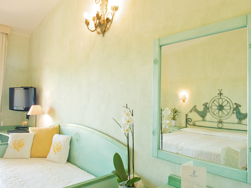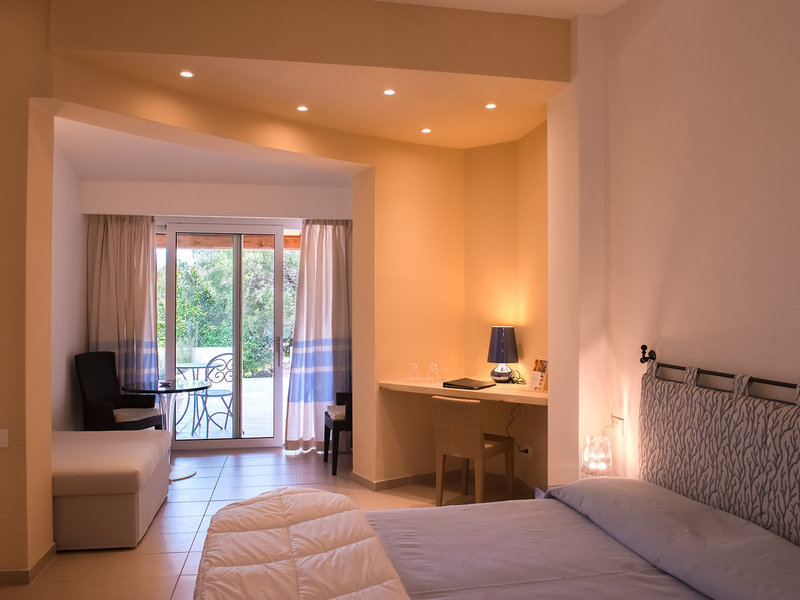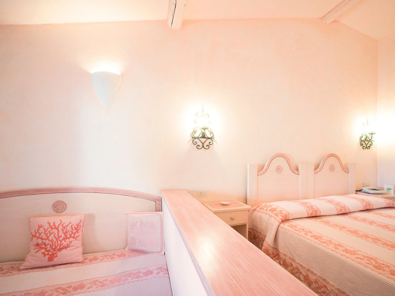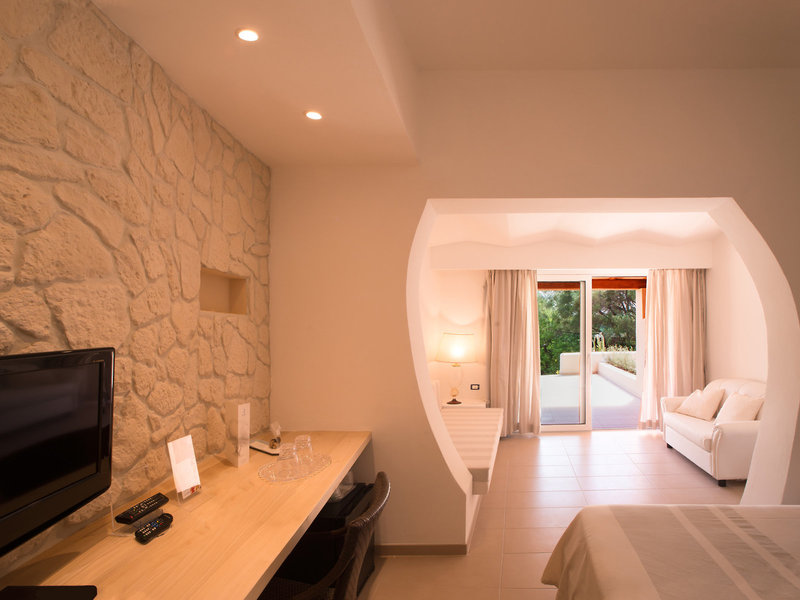 - Superior (DZX3), Doppelzimmer, Bergseite, Gartenseite, Blick auf das Meer und die Insel Tavolara, ca. 22 - 28 m², Gesamtanzahl der Räume in diesem Zimmertyp: 1, Aufteilung wie folgt: kombiniertes Wohn-/Schlafzimmer, Klimaanlage: individuell regelbar, kalt, warm, Heizung, Safe, Standventilator, Getränkespender, Sofa, Schreibtisch, Minibar: gegen Gebühr, Softdrinks: gegen Gebühr, Wasser: gegen Gebühr, alkoholische Getränke: gegen Gebühr, Snacks: gegen Gebühr, Minibarauffüllung, Telefon, Internet: WLAN/WiFi: ohne Gebühr, Fernseher: Flatscreen, im Schlafzimmer, deutsches Programm, Sat-TV, Roomservice: gegen Gebühr, Reinigungsservice, Tageszeitung, Dusche, WC, Föhn, Balkon oder Terrasse: mit Liegestühlen, mit Liegen, mit Privat-Garten