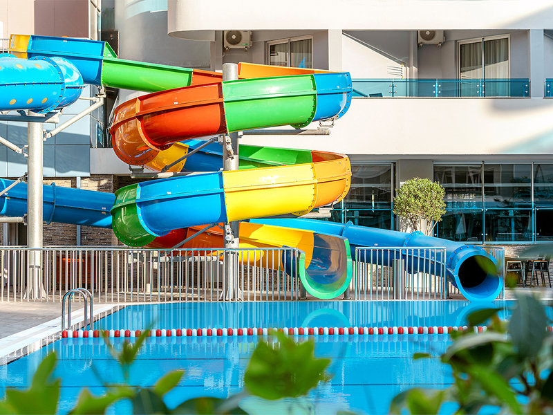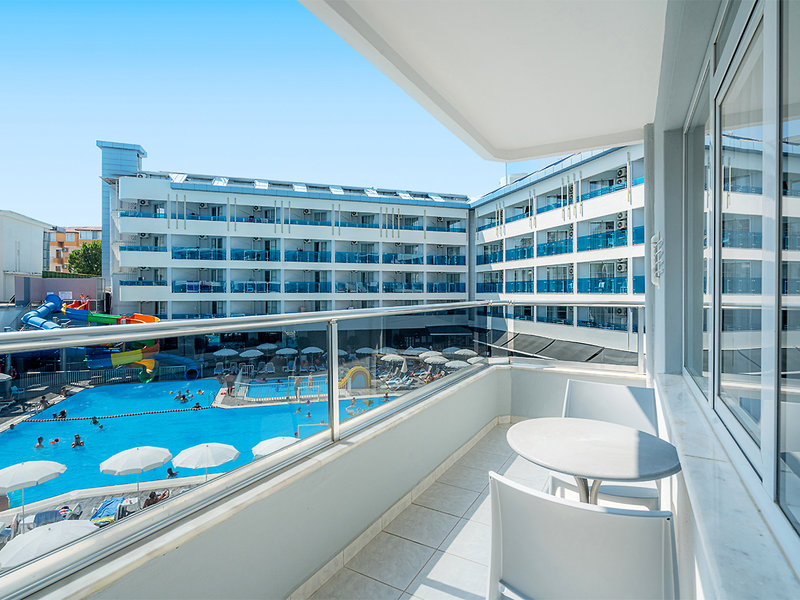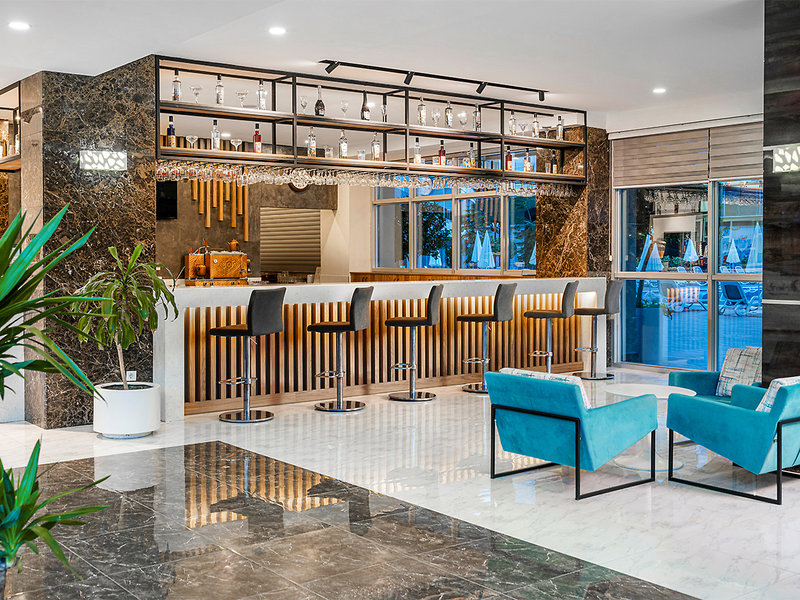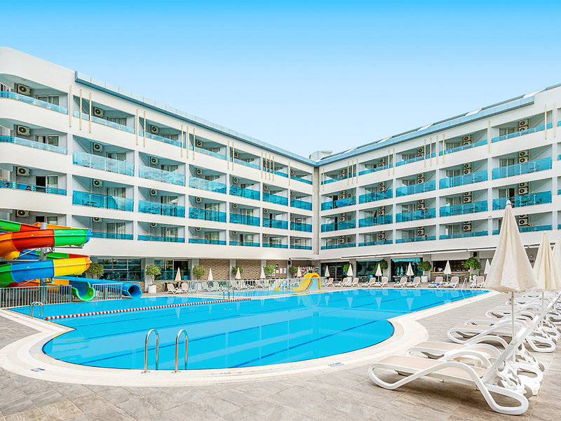 Ausstattung: Kleines Hotel der guten Mittelklasse mit Swimmingpool (wetterabhängig, im Winter nicht beheizt), separates Kinderbecken, Pool-/Snack- und Strandbar (ca. April-Oktober). Schirme und Liegen am Pool und Strand. Empfangsbereich mit Rezeption und Lobbybar, Hauptrestaurant, Patisserie (von 10:00-22:30 Uhr), weitere Bars und Wellnesscenter. Landeskategorie: 4 Sterne, 185 Zimmer, 2 Lifte.