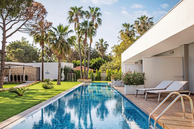 - Sandstrand: flach abfallend, von der Anlage getrennt durch Promenade, Sonnenschirme, Liegen, Strandtuch/Badetuch, Strandservice (ca. 1.4.-31.10.), (von 9.00 bis 17.00 Uhr)