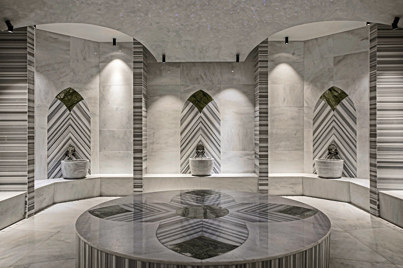 - Saunabereich: Sauna, Hamam, Eisbrunnen