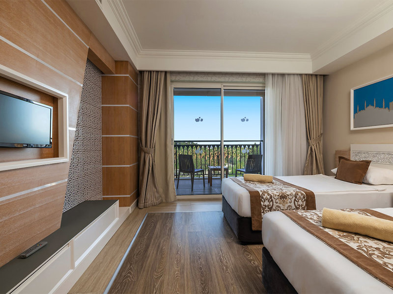 Ausstattung: Luxushotel der bekannten Crystal-Hotelkette. Weitläufige Poollandschaft (stdw.), 11 Wasserrutschen (ab 10 Jahren), Sonnenterrassen, Pool-, Snack-, Strandbar. Liegen, Schirme, Badetücher. Imposante Empfangshalle, Rezeption, Lobbybar. WLAN, Hauptrestaurant (sep. Bereich nur für Erwachsene), 6 À-la-carte-Restaurants (u. a. osmanisch, mediterran, mexikanisch, asiatisch; jew. mit Reservierung; teilw. gegen Gebühr), Bars, Geschäfte. Landeskat.: 5 Sterne, 584 Zimmer, Lifte.
