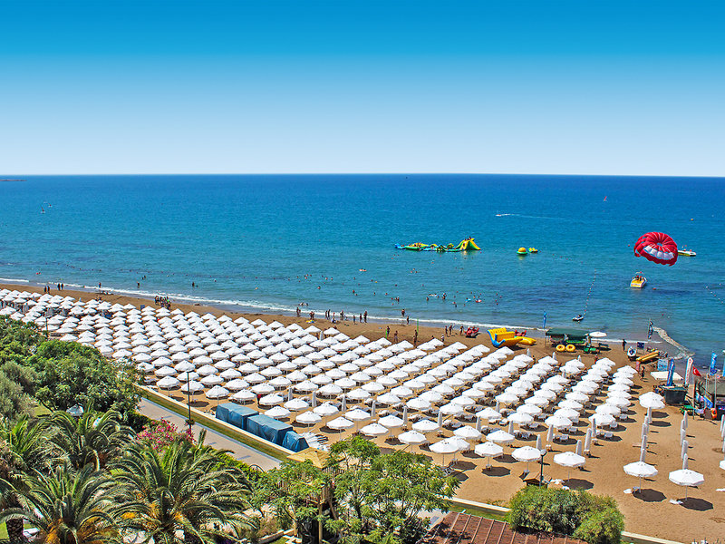 Lage: Bis zum hoteleigenen Sandstrandabschnitt mit tagsüber geöffneter Strandbar ca. 400 m (Shuttleservice). Bis zum Zentrum von Side ca. 3 km (Minibusverbindungen).