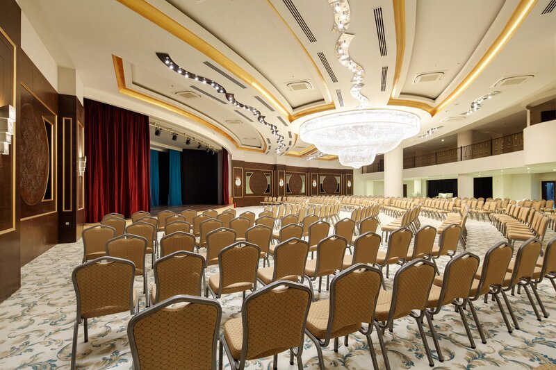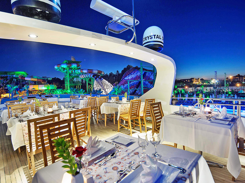 Vybavenie: Luxusný hotel renomovanej hotelovej siete Crystal. Rozsiahla bazénová plocha (štandardná), 11 toboganov (pre osoby od 10 rokov), slnečné terasy, bar pri bazéne, snack bar a plážový bar. K dispozícii sú ležadlá, slnečníky a plážové osušky. Pôsobivá vstupná hala, recepcia a vstupná hala. Wi-Fi, hlavná reštaurácia (samostatná časť len pre dospelých), 6 reštaurácií à la carte (vrátane osmanskej, stredomorskej, mexickej a ázijskej; každá vyžaduje rezerváciu; niektoré za poplatok), bary a obchody. Národná kategória: 5 hviezdičiek, 584 izieb a výťahy.