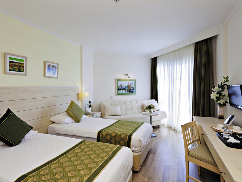 Poloha a okolie: Hotel sa nachádza približne 200 metrov od dlhej piesočnatej pláže. K dispozícii je kyvadlová doprava. Staré mesto Side je vzdialené približne 3 km pozdĺž plážovej promenády. Čas transferu: približne 60 minút.