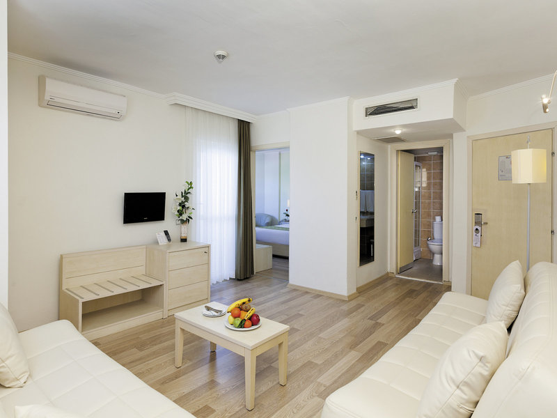 - Suita (FZX2), rodinná izba, pri bazéne, celkový počet izieb v tomto type izby: 2, rozloženie: kombinovaná obývačka/spálňa, 1 spálňa, 1 manželská posteľ, 2 rozkladacie pohovky, detská postieľka: bez poplatku, na vyžiadanie & nutná rezervácia, klimatizácia: bez poplatku, individuálne nastaviteľná, studená, teplá, podlaha: laminát, trezor: bez poplatku, posedenie, príslušenstvo na prípravu kávy/čaju, minibar: bez poplatku, voda: bez poplatku, dopĺňanie minibaru: denne, telefón, Internet: WLAN/WiFi: za poplatok, Televízor: plochá obrazovka, v obývacej časti, v spálni, satelitná TV, izbová služba: za poplatok, upratovacia služba: bez poplatku, sprcha, WC, sušič vlasov, balkón: s posedením
