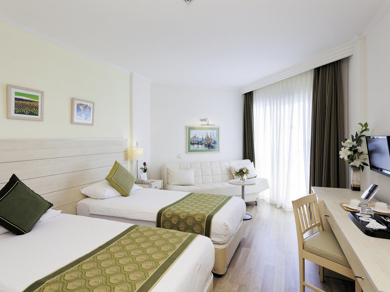 - Larger Room Land View without separation (FZL1), Familienzimmer, Landseite, ca. 25 m², Gesamtanzahl der Räume in diesem Zimmertyp: 1, Aufteilung wie folgt: 1 Schlafzimmer, 2 Einzelbetten, 1 Doppelbett, Babybett: ohne Gebühr, Anfrage & Reservierung notwendig, Klimaanlage: ohne Gebühr, individuell regelbar, kalt, warm, Fußboden: Laminat, Safe: ohne Gebühr, Kaffee-/Teezubereiter, Minibar: ohne Gebühr, Wasser: ohne Gebühr, Minibarauffüllung: täglich, Telefon, Internet: WLAN/WiFi: gegen Gebühr, Fernseher: Flatscreen, Sat-TV, Roomservice: gegen Gebühr, Reinigungsservice: ohne Gebühr, Dusche, WC, Föhn, Balkon: mit Sitzgelegenheit
