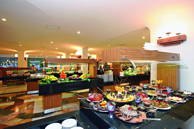 All Inclusive: Frühstück, Mittag- und Abendessen vom Buffet, kontinentales Spätaufsteherfrühstück, tagsüber türkische und internationale Snacks, nachmittags Kaffee/Tee und Gebäck sowie Mitternachts-Suppe. Diverse lokale alkoholfreie und alkoholische Getränke an den jeweils geöffneten Bars von 10-23:30 Uhr inklusive. Die Minibar ist bei Ankunft einmalig mit Softdrinks und stillem Wasser bestückt, letzteres wird täglich erneuert. Das Tragen eines All-Inclusive-Armbandes ist obligatorisch.