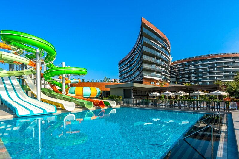 Vybavenie: Záhrada, 2 bazény, detský bazén, tobogán. Lehátka a slnečníky pri bazéne a na pláži (za poplatok), ležadlá na pláži (za poplatok), bar pri bazéne. Lobby, recepcia, lobby bar, TV miestnosť. Reštaurácia (bufet) s národnou a stredomorskou kuchyňou, terasa, kaderníctvo, diskotéka, kino, parkovisko (za poplatok). 420 izieb.
