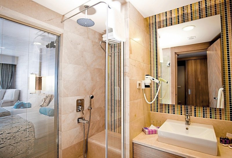 - 26-30 m2, dvojlôžková, superior, prízemie, výhľad na more, nefajčiarska, posteľná bielizeň, uteráky a matrace zo 100% organickej bavlny, sprcha, WC, sušič vlasov, laminátové podlahy, klimatizácia, centrálne ovládané, minibar, dopĺňané pravidelne, trezor, TV (satelit). -TV, rýchlovarná kanvica, káva/čaj, terasa (zariadená), vírivka, so záhradkou