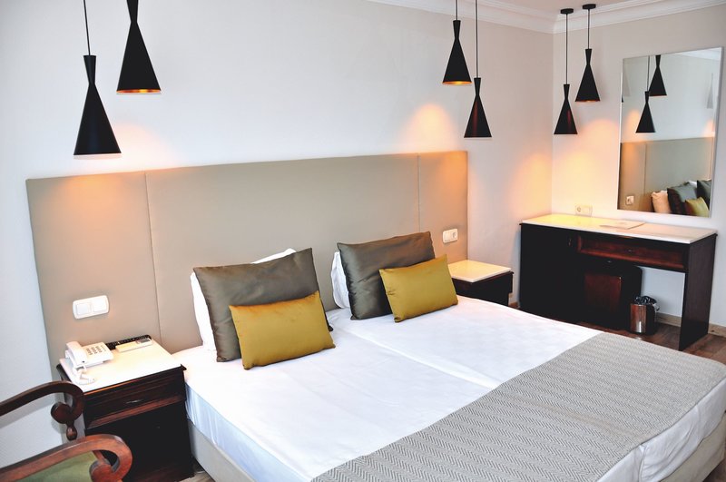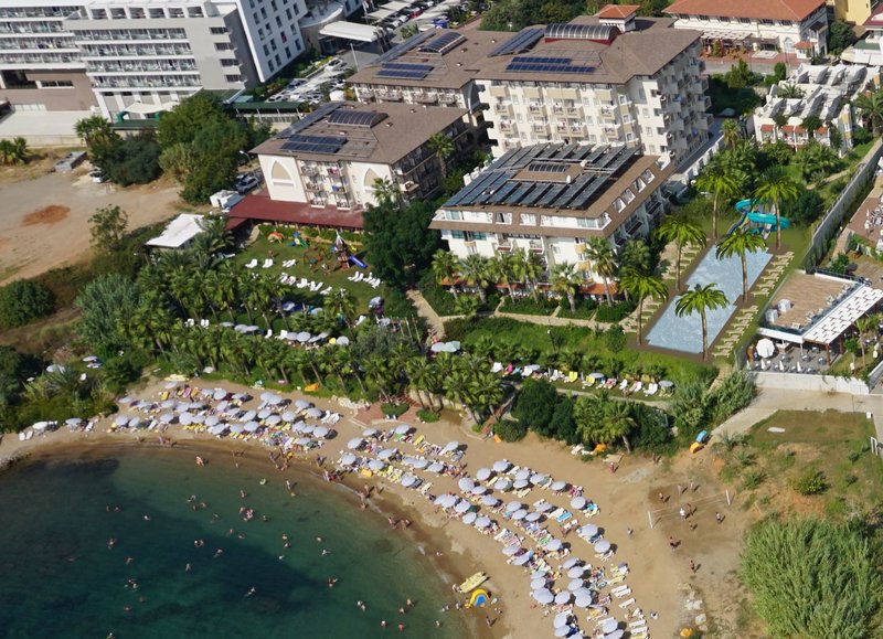 Ausstattung: Das bei deutschen beliebte Hotel bietet insgesamt 140 Zimmer, die sich auf ein zweiteiliges Haupthaus mit vier Etagen verteilen. Zu den zentralen Einrichtungen gehören eine schöne Empfangshalle mit gemütlichen Sitzgruppen, Rezeption, TV-Ecke, Lifts, Wi-Fi ist im Lobbybereich, Restaurant und auf den Zimmern inklusive, ein À-la-carte-Restaurant (einmal pro Aufenthalt, mit Reservierung und nach Verfügbarkeit), ein Hauptrestaurant mit Terrasse (wetterbedingt) und ein kleiner Wellnessbereich mit Hallenbad (im Winter geöffnet). Außerdem ein Kiosk und ein Friseur (jeweils gegen Gebühr). In der gepflegten Außenanlage befindet sich ein gepflegter Süßwasser-Swimmingpool, Pool-/Snackbar und Sonnenterrasse. Hier und am Strand sind Liegen, Auflagen, Sonnenschirme und Badetücher inklusive.