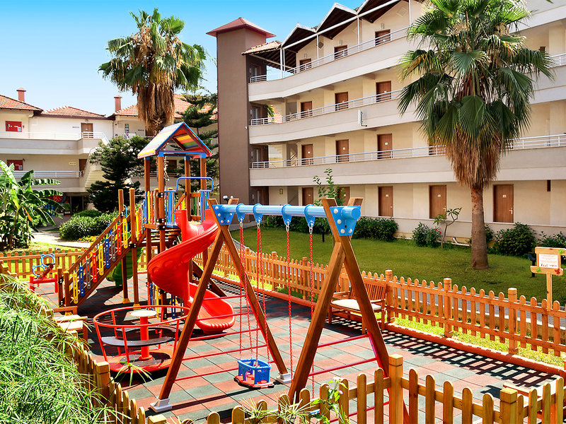 Ausstattung: Hotel der guten Mittelklasse, bestehend aus einem Hauptgebäude, mehrere Nebengebäude. Gartenanlage, Swimmingpool, Sonnenterrasse. Liegen, Schirme, Auflagen, Badetücher (Wechsel geg. Geb.) am Pool/Strand. Pool-/Strandbar. Empfangshalle, Rezeption, Sitzecken, Lobbybar, WLAN, Hauptrestaurant, À-la-carte-Restaurant (mediterran; Reserv.), Panoramabar. Minimarkt, Friseur, Bibliothek, TV-Zimmer. Landeskat.: 4 Sterne, 240 Zimmer, 4 Etg., Lifte.