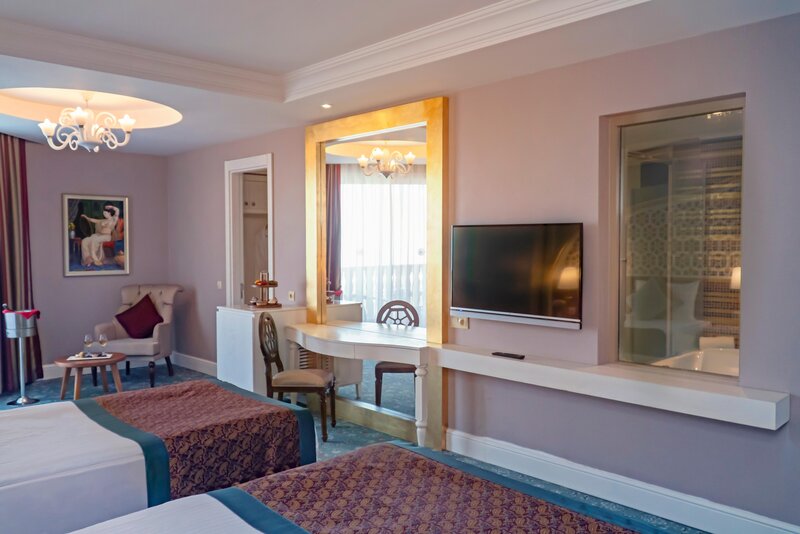 Junior Suite (s výhľadom na more): Minibar (za poplatok). Kanvica, uteráky. TV, telefón, trezor (za poplatok). Vaňa/sprcha, WC, sušič vlasov. Max. 3 dospelí.