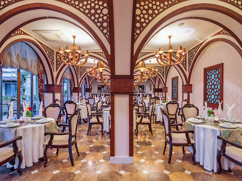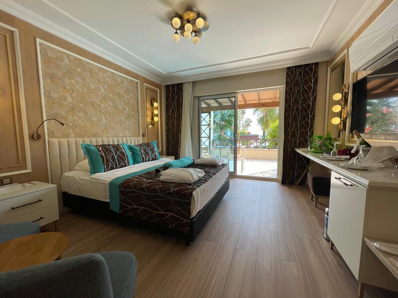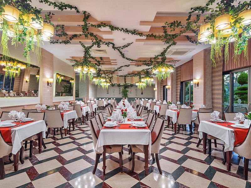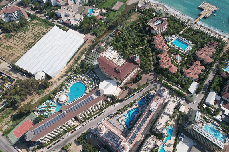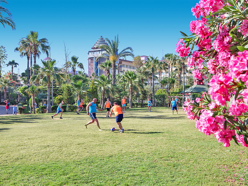 Vybavenie: dovolenkový rezort vyššej strednej triedy, 2 bazény, 3 tobogány, mólo s toboganmi priamo do mora (v závislosti od počasia), slnečná terasa, ležadlá, slnečníky, vankúše a osušky pri bazéne a na kúpalisku. pláž, bazén/snack bar. Lobby, recepcia, lobby bar, WLAN (vo verejných priestoroch), hlavná reštaurácia, 4 à la carte reštaurácie (vrátane rybej, talianskej, otvorené 15.05.-30.09.), bary, vonkajšia diskotéka (ak to počasie dovolí), amfiteáter, obchody, kaderníctvo . Kategória: 5 hviezdičiek, 668 izieb.