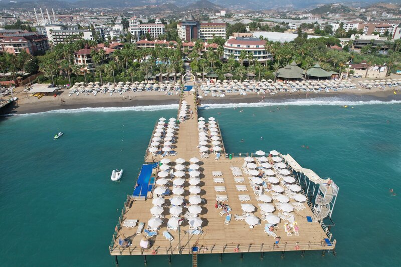 Poloha: V dovolenkovej oblasti Alanya-Konakli, priamo na vlastnej hotelovej piesočnatej pláži (poprekladané okruhliakmi). Množstvo nákupných možností v okolí.