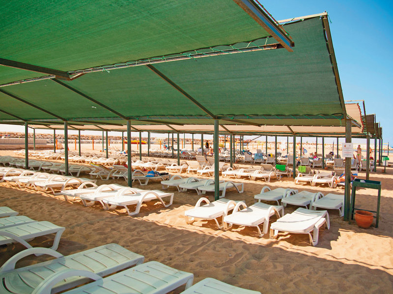 - Strand: Sand, flach abfallend, privat, Liegestühle, Sonnenschirme