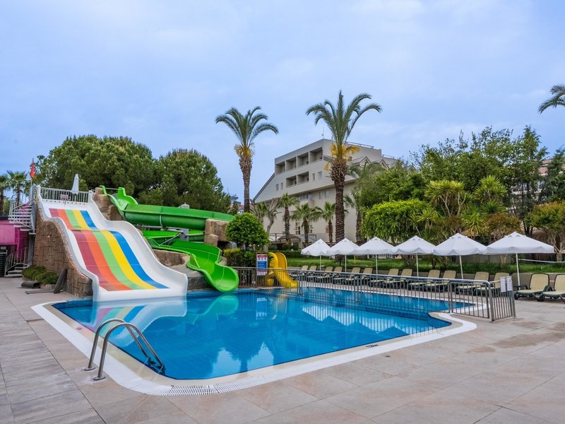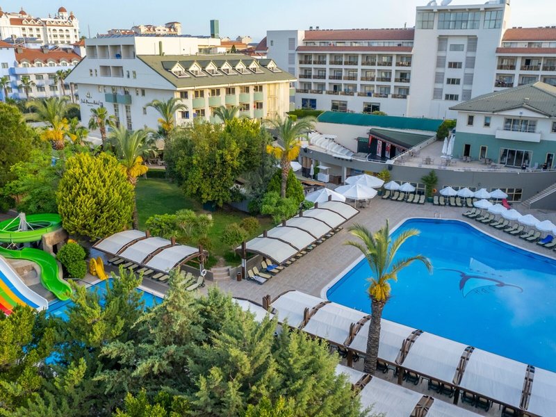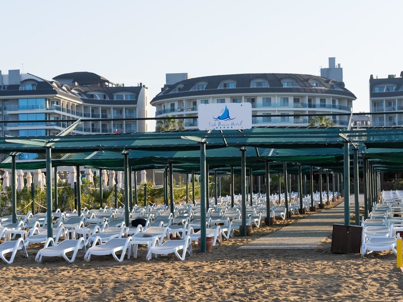 Poloha a okolie Obľúbený dovolenkový hotel sa nachádza cca 300 m od mierne sa zvažujúcej pláže s jemným pieskom so šírkou cez 50 m. Do Side s množstvom obchodov a pamiatok je to taxíkom alebo verejným minibusom asi 8 km.