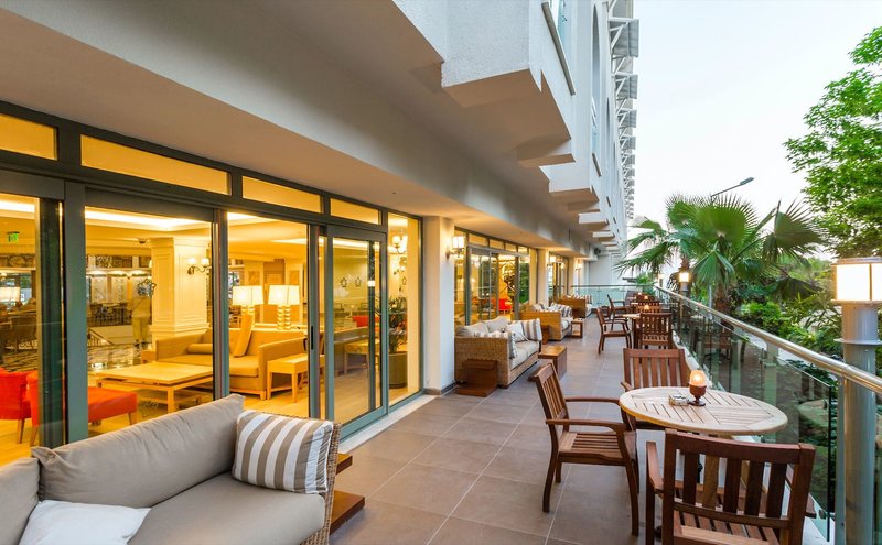 Vybavenie: Tento obľúbený rekreačný hotel na výbornom mieste priamo pri pláži, v ktorom je v zime 2025/2026 naplánovaná rekonštrukcia všetkých typov izieb, hlavnej reštaurácie a cukrárne, má celkovo 266 izieb na piatich poschodiach (k dispozícii sú tri výťahy) a svojim hosťom ponúka vkusne zariadenú recepciu s lobby barom, bezplatné Wi-Fi pripojenie v celom hoteli (do 6 MB), LCD TV kútik so satelitným príjmom, internetovú kaviareň, obchody, kaderníctvo (každé za poplatok), bufetovú reštauráciu, niekoľko à la carte reštaurácií (pri minimálnom pobyte 7 nocí je v cene zahrnuté jedno bezplatné jedlo v každej à la carte reštaurácii) a bary. V udržiavanej záhrade sa v lete nachádza krásne upravený sladkovodný bazén so samostatným detským bazénom a slnečnou terasou, ako aj bar pri bazéne (otvorený od 1. apríla do 31. októbra, ak to počasie dovolí). Lehátka, slnečníky a plážové osušky sú k dispozícii bezplatne pri bazéne aj na pláži. Na pláži sa nachádza plážový/občerstvovací bar (1.4.-31.10. v závislosti od počasia).