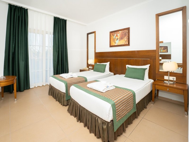 - Standard Main Building Side Seaview (DZX5), Doppelzimmer, Nichtraucherzimmer, im Hauptgebäude, Meerseite, seitlicher Meerblick, ca. 24 m², Gesamtanzahl der Räume in diesem Zimmertyp: 1, Aufteilung wie folgt: 1 Schlafzimmer, 2 Einzelbetten, Babybett: ohne Gebühr, Anfrage & Reservierung notwendig, Klimaanlage: ohne Gebühr, saisonabhängig; wetterabhängig, zentral gesteuert, kalt, warm, Fußboden: Laminat, Safe: ohne Gebühr, Minibar: ohne Gebühr, Softdrinks: ohne Gebühr, Wasser: ohne Gebühr, alkoholische Getränke: ohne Gebühr, Minibarauffüllung: täglich, Telefon, Internet: WLAN/WiFi: ohne Gebühr, Fernseher: Flatscreen, im Schlafzimmer, Sat-TV, Reinigungsservice: ohne Gebühr, Dusche, WC, Föhn, Kosmetikspiegel, Balkon: mit Sitzgelegenheit, Französischer Balkon