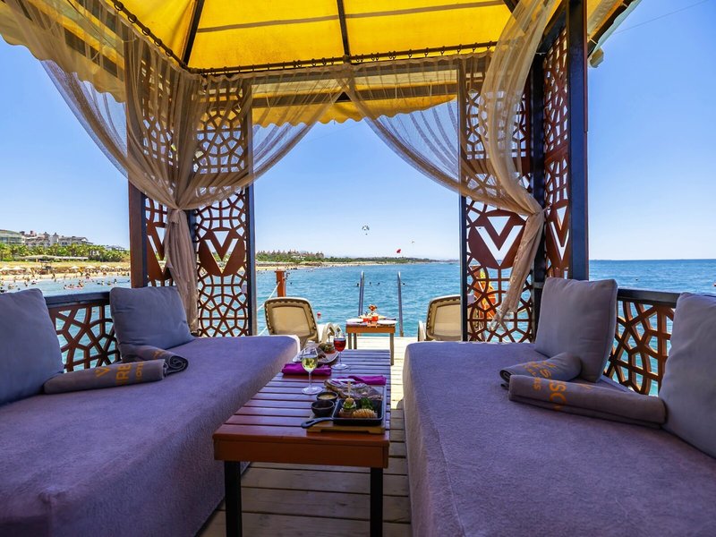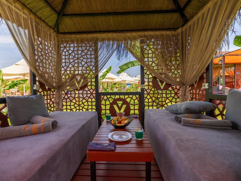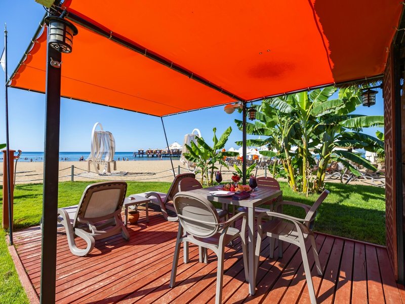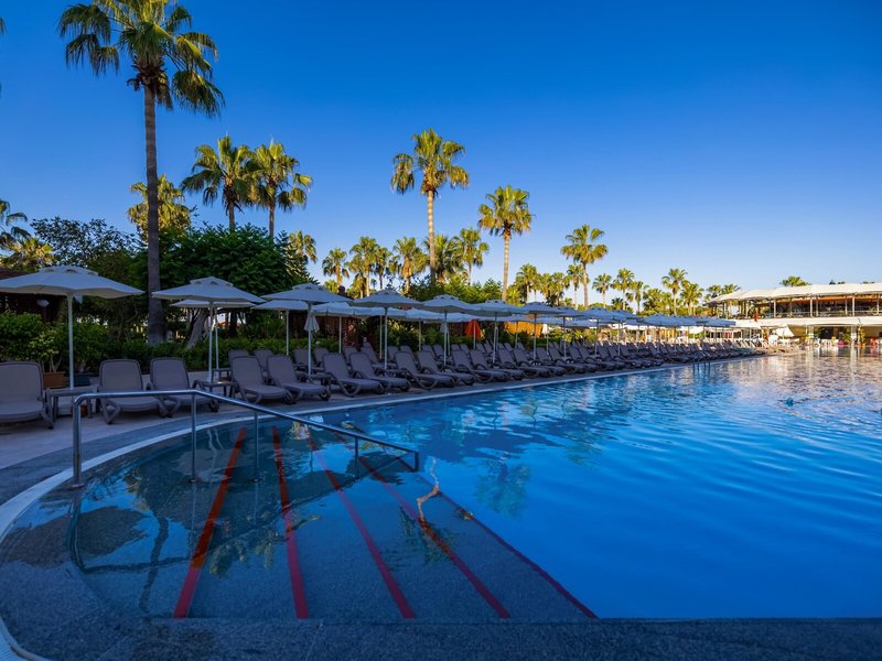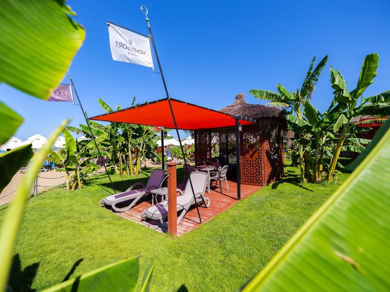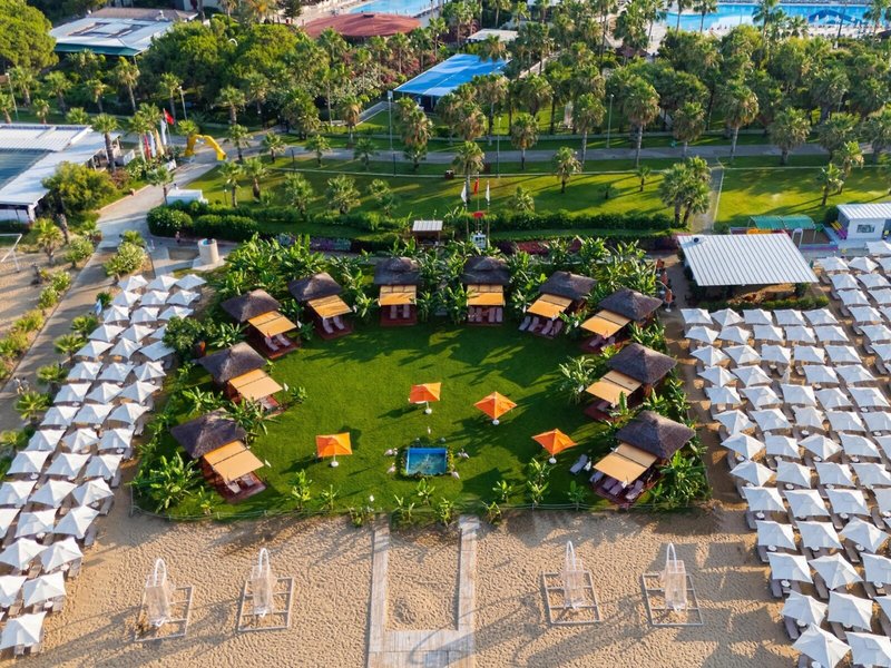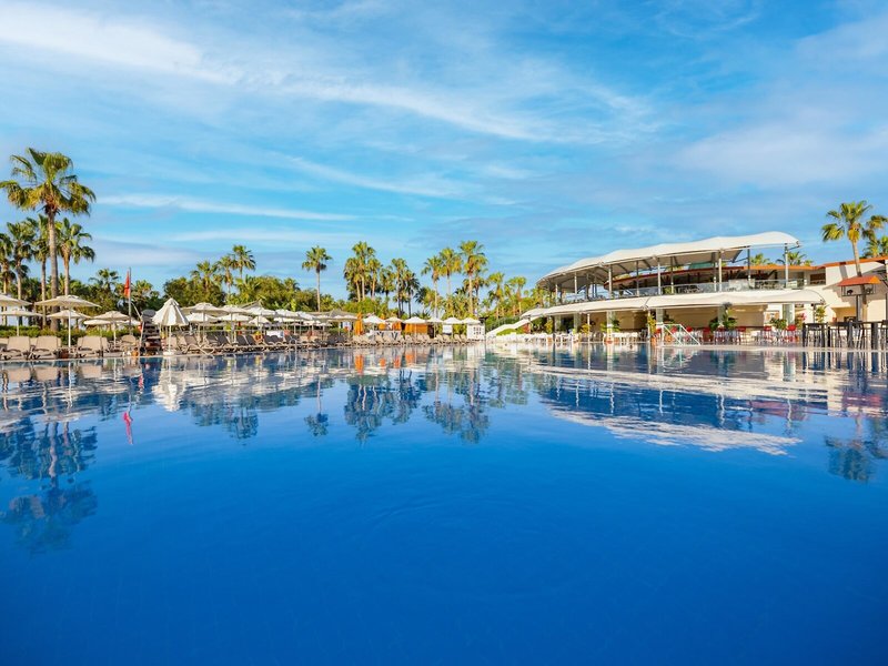 Ausstattung: Garten, Pool, Kinderpool, Wasserrutsche. Liegen, Schirme, Auflagen, Handtücher am Pool und am Strand (geg. Geb.), Pool-/Snackbar. Empfangshalle, Rezeption, Lobby-Bar, Lounge. Restaurant (Buffet) mit nationalen, italienischen und mediterranen Speisen, Terrasse, Bar, Minimarkt, Shop, Friseur, Diskothek. 404 Zimmer, 6 Etagen, 8 Lifte.
