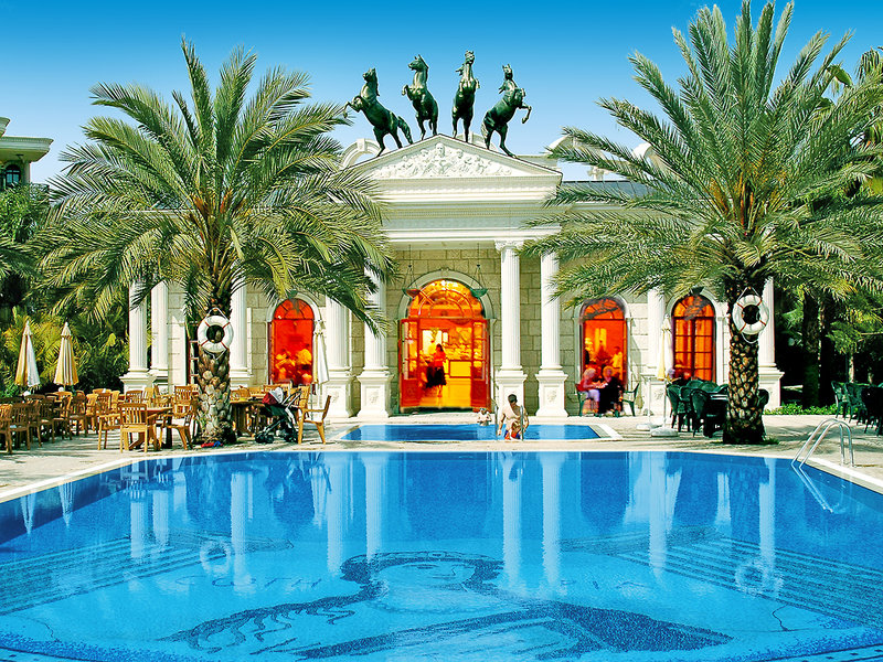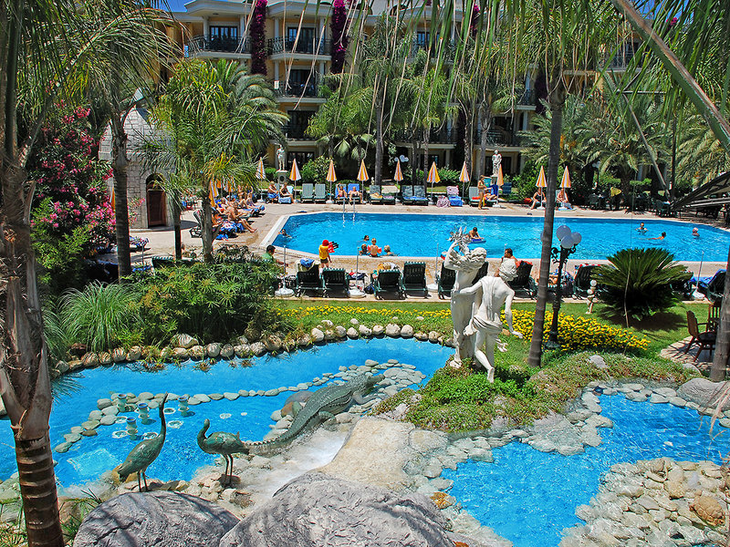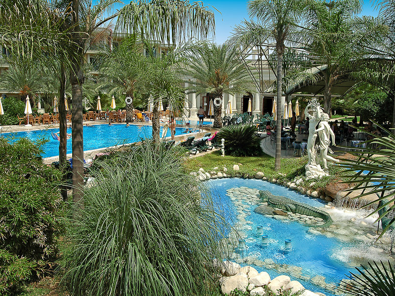 Ausstattung: Elegantes, im römisch-griechischen Stil erbautes Hotel der gehobenen Mittelklasse, bestehend aus einem Haupthaus und einem Nebengebäude. Im Außenbereich subtropische Gartenanlage und Swimmingpool mit Sonnenterrasse. Liegen, Schirme und Badetücher am Pool und am Strand. Pool- und Strandbar. Empfangsbereich mit Rezeption. WLAN in den öffentlichen Bereichen. Hauptrestaurant, Fischrestaurant (Reservierung erforderlich), Bar, Geschäfte, Massagestudio. Landeskategorie: 4 Sterne, 116 Zimmer, 3 Etagen.