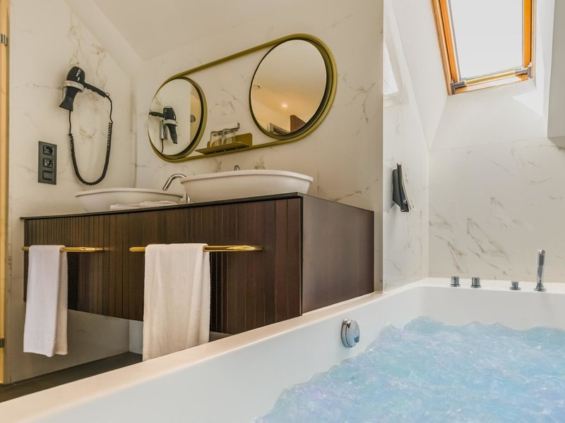 - Junior suita (JSX1), junior suita, nefajčiarska izba, strana do záhrady, výhľad do záhrady, cca 36 - 40 m², posledná kompletná rekonštrukcia v roku 2016, celkový počet izieb v tomto type izby: 1, rozloženie: kombinované. obývacia izba/spálňa, 2 samostatné postele (100x200cm), 1 prístelka (90x190cm), detská postieľka: bez poplatku, klimatizácia: bez poplatku, individuálne nastaviteľné, kúrenie: individuálne nastaviteľné, podlaha: dlažba, trezor: bez poplatku, pohovka , písací stôl, príslušenstvo na prípravu kávy/čaju, minibar: za príplatok, nealko nápoje: za poplatok, voda: za poplatok, alkoholické nápoje: za poplatok, občerstvenie: za poplatok, telefón, Internet: WLAN/WiFi: bez poplatku , televízor: plochá obrazovka, nemecký program, satelitná TV, izbová služba: 24 hodín denne, za poplatok, Upratovacia služba: denne, zdarma, samostatná sprcha, vaňa, WC, župan: zadarmo, papuče: zdarma poplatok, fén, kozmetické zrkadlo, balkón alebo terasa: s ležadlami, s posedením