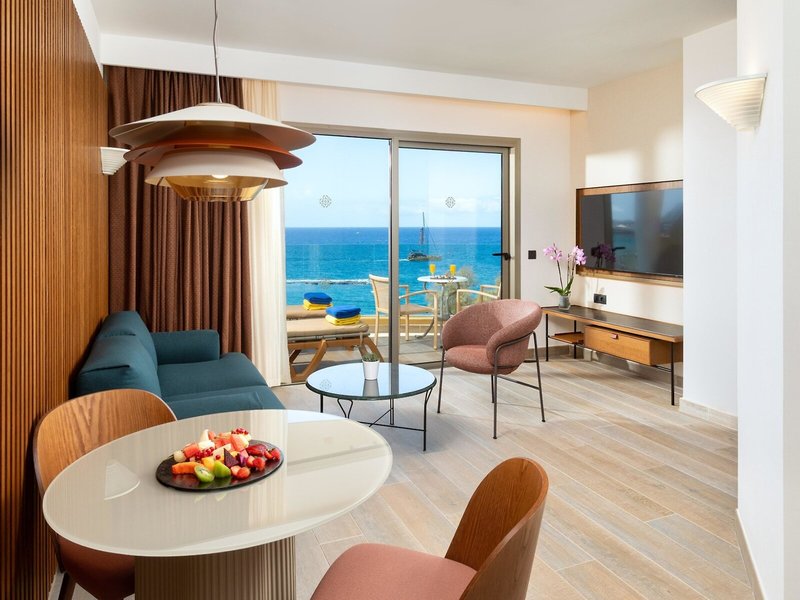 - Juniorsuite Seaview (JSM1), Juniorsuite, Nichtraucherzimmer, Meerblick, ca. 36 - 40 m², letzte Komplettrenovierung 2016, Gesamtanzahl der Räume in diesem Zimmertyp: 1, Aufteilung wie folgt: kombiniertes Wohn-/Schlafzimmer, 1 Zustellbett (90x190cm), Babybett: ohne Gebühr, Klimaanlage: ohne Gebühr, individuell regelbar, Heizung: individuell regelbar, Fußboden: Fliesenboden, Safe: ohne Gebühr, Sofa, Schreibtisch, Kaffee-/Teezubereiter, Minibar: gegen Gebühr, Softdrinks: gegen Gebühr, Wasser: gegen Gebühr, alkoholische Getränke: gegen Gebühr, Snacks: gegen Gebühr, Telefon, Internet: WLAN/WiFi: ohne Gebühr, Fernseher: Flatscreen, deutsches Programm, Sat-TV, Roomservice: täglich 24 Stunden, gegen Gebühr, Reinigungsservice: täglich, ohne Gebühr, separate Dusche, Badewanne, WC, Bademantel: ohne Gebühr, Slipper: ohne Gebühr, Föhn, Kosmetikspiegel, Balkon oder Terrasse: mit Liegen, mit Sitzgelegenheit