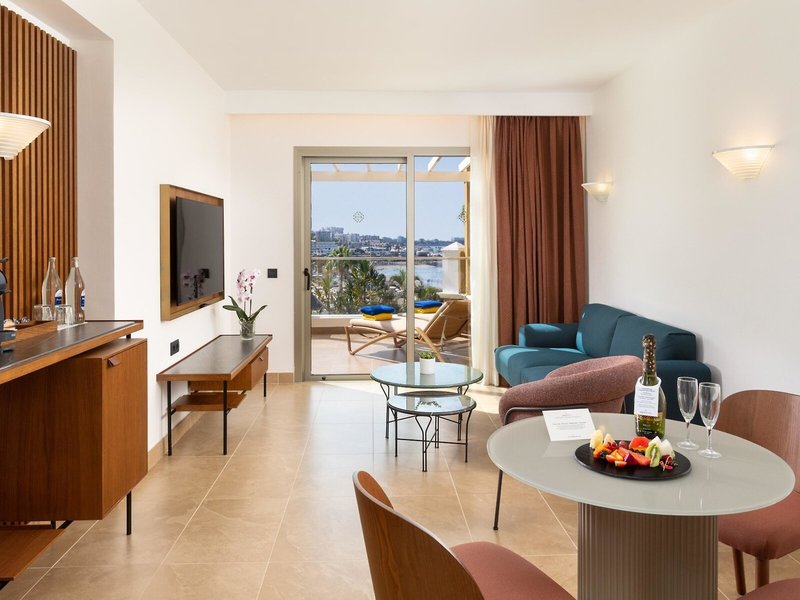 - Suita Superior (SUM2), suita, nefajčiarska izba, výhľad na more, cca 45 - 55 m², celkový počet izieb v tomto type izby: 2, rozloženie: obývacia izba, 1 spálňa, 2 samostatné lôžka (100x200cm) , 1 prístelka (90x190cm), detská postieľka : zadarmo, klimatizácia: zadarmo, individuálne nastaviteľné, kúrenie: individuálne nastaviteľné, podlaha: dlažba, trezor: zdarma, pohovka, písací stôl, príslušenstvo na prípravu kávy/čaju, minibar : zadarmo, nealko nápoje: zadarmo, voda: zadarmo, Alkoholické nápoje: za poplatok, občerstvenie: za poplatok, telefón, Internet: WLAN/WiFi: bez poplatku, TV: s plochou obrazovkou, v obývačke priestor, v spálni, nemecké kanály, satelitná TV, izbová služba: 24 hodín denne, za poplatok, upratovanie: denne, zdarma, samostatná sprcha, vaňa, WC, župan: zadarmo, papuče: zdarma poplatok, fén, make-up zrkadlo, balkón alebo terasa: s ležadlami, s posedením