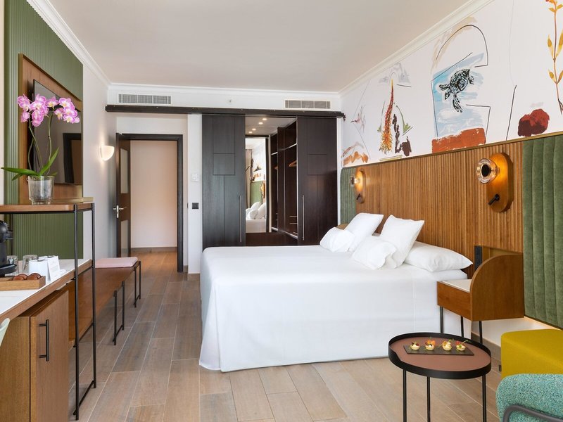 - Junior Suita s výhľadom na more (JSM1), Suita Junior, nefajčiarska izba, výhľad na more, cca. 36 - 40 m², posledná kompletná rekonštrukcia v roku 2016, celkový počet izieb v tomto type izby: 1, dispozičné riešenie: kombinovaná obývačka/spálňa, 1 prístelka (90x190cm), detská postieľka: zadarmo, klimatizácia: zadarmo, individuálne ovládané, kúrenie: individuálne ovládané, podlaha: dláždená podlaha, trezor: zadarmo, pohovka za stôl, káva, nealkoholické nápoje: pohovka za stôl, za poplatok nápoje: za poplatok, občerstvenie: za poplatok, telefón, internet: WLAN/WiFi: zadarmo, TV: plochá obrazovka, nemecké kanály, satelitná TV, izbová služba: denne 24 hodín, za poplatok, upratovanie: denne, zadarmo, samostatná sprcha, vaňa, WC, župan: zadarmo, papuče: zadarmo, sušič vlasov, kozmetické zrkadlo, balkón alebo terasa: s ležadlami