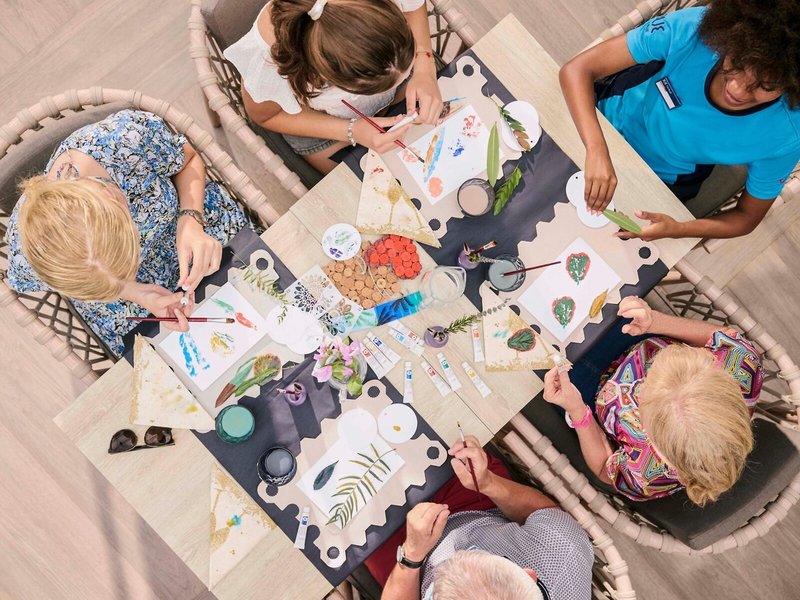 • Kreative Ecke wie Muschelkunst, Steinmalerei oder die Herstellung von Armbändern