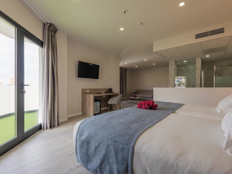 - Jednolôžková s dieťaťom Dvojlôžková izba s balkónom Teide View (DSX2), dvojlôžková izba, nefajčiarska izba, v hlavnej budove, severná strana, výhľad na hory, výhľad na TEIDE, cca 25 m², posledná kompletná rekonštrukcia 2021, posledná čiastočná rekonštrukcia 2021, celk. počet izieb v tomto type izby: 1, rozloženie: 1 spálňa, detská postieľka: zdarma, nutná rezervácia, klimatizácia, podlaha: laminát, trezor: zadarmo, písací stôl, minibar: zadarmo, telefón, internet : WLAN/WiFi: zadarmo, TV: plochá obrazovka, upratovacia služba, vaňa alebo sprcha, WC, balkón: s posedením