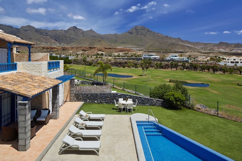 Ausstattung: Die Villen fallen besonders durch ihre traditionelle und kanarische Architektur auf. Die Anlage ist umgeben von wunderschöner Vegetation und verfügt über insgesamt 78 Villen, eine 24-Stunden-Rezeption, kostenloser Wi-Fi Bereich, ein À-la-carte-Restaurant "LA TORRE", die Bar "Plaza" (mit speziellen TV-Sportsendungen), ein Kongresszentrum mit 3 Zimmern. Wäscheservice gegen Gebühr. In der wunderschönen Gartenanlage befindet sich die Poolbar "Blue Oasis", zwei das Jahr über beheizte Süßwasser Swimmingpools, ein Kinderpool und eine Sonnenterrasse mit kostenlosen Liegen und Schirmen. Handtücher für den Pool erhalten Sie kostenfrei.