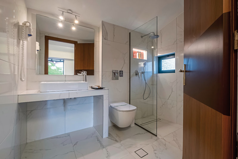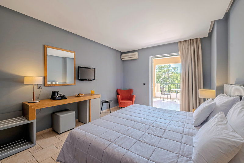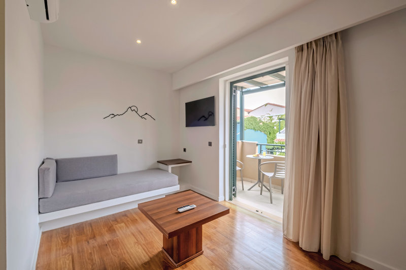 - 41-45 m², Rodinný, Superior, Výhľad na more (čiastočný), zrekonštruovaný (2025), 1 samostatná spálňa, 1 kúpeľňa, sprchovací kút alebo vaňa, WC, župan, fén, klimatizácia, minichladnička, trezor, TV (satelitná TV), Wi-Fi, káva/čaj, balkón alebo terasa (zariadený)