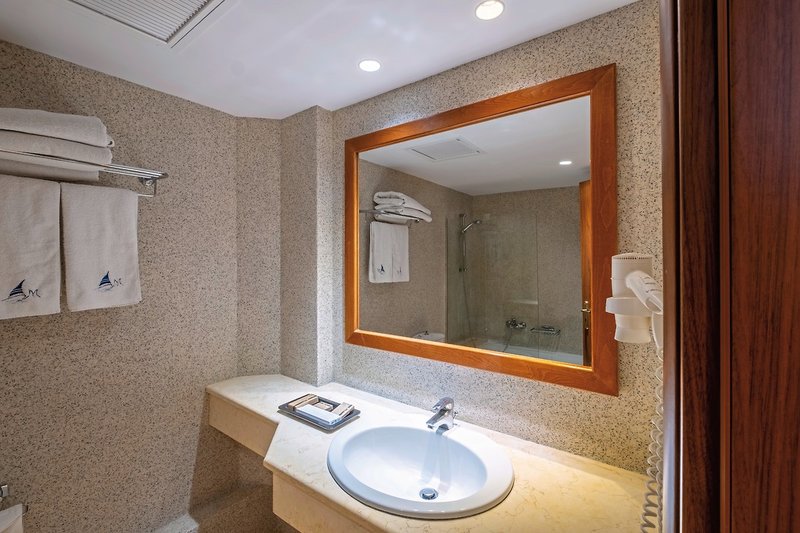 - 31-35 m², Dvojlôžková izba, Executive, Výhľad na more (čiastočný), Renovovaná (2025), 1 kúpeľňa, sprchovací kút alebo vaňa, WC, župan, papuče, sušič vlasov, klimatizácia, minichladnička, trezor, 1 TV (satelitná TV), Wi-Fi, káva/čaj, balkón alebo terasa (zariadená)