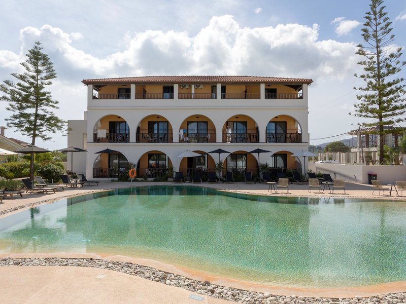 Lage & Umgebung Das in ruhiger Hanglage erbaute Hotel liegt etwa 200 m vom feinsandigen Strand entfernt. Es befindet sich etwa 6 km vom Flughafen und etwa 8 km von Zakynthos-Stadt. Von hier lassen sich wunderbar die überwältigenden Naturschönheiten der Insel erkunden.