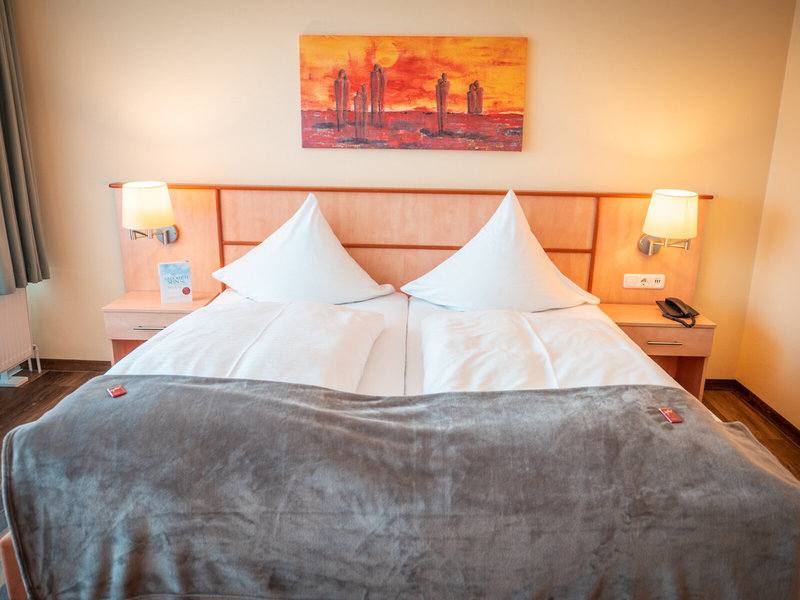 - Doppelzimmer Standard (DZX1), Doppelzimmer, Landseite, Landblick, ca. 32 m², 1 Doppelbett (180x200cm), 1 Zustellbett (90x200cm), Babybett: pro Nacht ca. 5.00 EUR, Anfrage & Reservierung notwendig, Heizung: saisonabhängig; wetterabhängig, individuell regelbar, Fußboden: Teppichboden, Safe: gegen Gebühr, Sitzecke, Schreibtisch, Nespressomaschine, Minibar: gegen Gebühr, Telefon, Internet: WLAN/WiFi: ohne Gebühr, Fernseher: Flatscreen, Tablet, Reinigungsservice: täglich, ohne Gebühr, Dusche, WC, Föhn, Balkon: mit Sitzgelegenheit