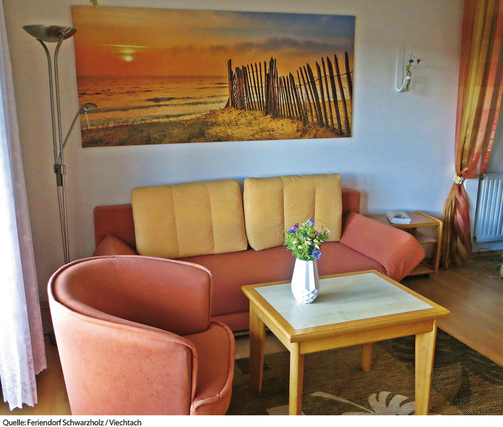 - 61-70 qm, Appartement, Nichtraucher, 2 separate Schlafzimmer, kombinierter Wohn-/Schlafraum, Doppelbettcouch, Dusche oder Badewanne, Heizung, zentral gesteuert, TV (Sat-TV), Kochnische, Essecke, Gas-/E-Herd (4 Kochplatten), Backofen, Wasserkocher, Kaffeemaschine, Balkon oder Terrasse (möbliert), bezogene Betten bei Anreise, Bettwäschewechsel kostenpflichtig, Handtücher können vor Ort gemietet werden (ca. 5 EUR/Person), (ca. 5 CHF/Person), Handtuchwechsel kostenpflichtig, Energiekosten (kostenfrei), Endreinigung (kostenfrei)